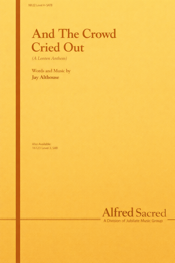 And the Crowd Cried Out is an anthem for Lent, Holy Week and Easter sunrise services. Suggested corresponding lectionary readings include Psalm 31, Isaiah 52: 13-15, Isaiah 53: 1-12, John 18: 1-40, John 19: 1-42, John 20: 1-10, Hebrews 4: 14-16 and Hebrews 5: 7-9. One basic homiletical theme is an invitation for all true believers to stand with Jesus in His betrayal, suffering, death and resurrection.