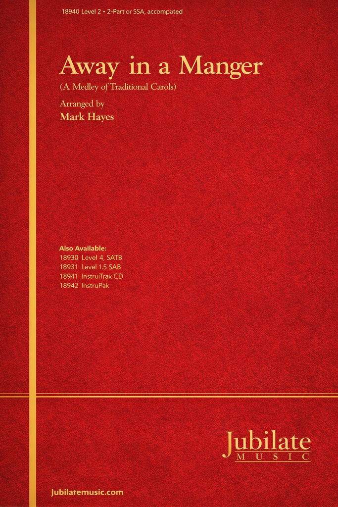 Sublimely beautiful for Christmas! This simple, unique medley of 3 cradle tunes features unison children's choir (opt. soloist) in the SATB voicing. Mark Hayes' genius is evident in the elegantly flowing accompaniment, lush harmonies, and breathtaking orchestration (opt. parts and CD track available separately). An excellent choice for school or church choirs at Christmas.