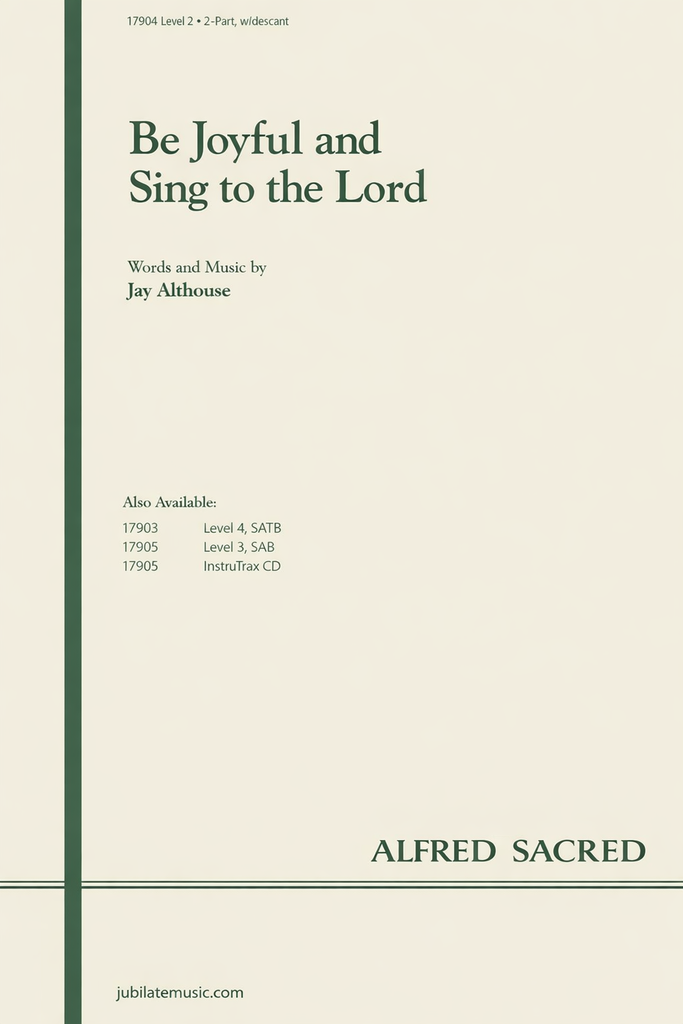 Be Joyful and Sing to the Lord is appropriate both for school choral festivals and concerts as well as church choirs of all sizes. The bright, articulate text contrasted with legato passages and crisp syncopations add up to a festive and fresh offering for all year long. Add the optional brass and timpani for a truly dynamic presentation. Delightful!